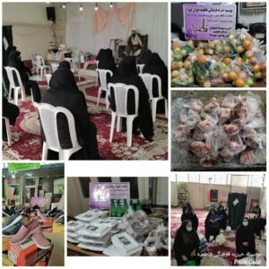 در پایان جلسه ارزاق مددجویان شامل : گوشت، کفش، میوه، غذا، دلستر، کلوچه