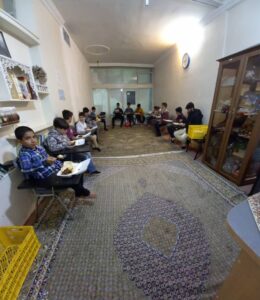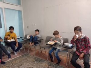 در ابتدا جلسه جمع دوستانه با توضیح و مسابقه در مورد زندگینامه امام بزرگوار شروع شد و سپس بچه ها در محیط موسسه به بازی پرداختند و بعد از آن که نماز جماعت مغرب و عشا با امامت مربی بچه ها برگزار شد ، افطار را به صورت دورهمی در موسسه خیریه فرهنگی فاطمیه میل نمودند.